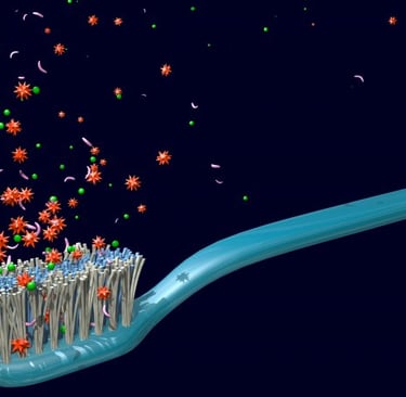 Your toothbrush removes plaque, food particles, and bacteria from your teeth and gums. After brushing, those same bacteria can remain on the bristles. Because toothbrushes are typically stored in bathrooms — often near toilets and sinks — they can also be exposed to airborne contaminants.